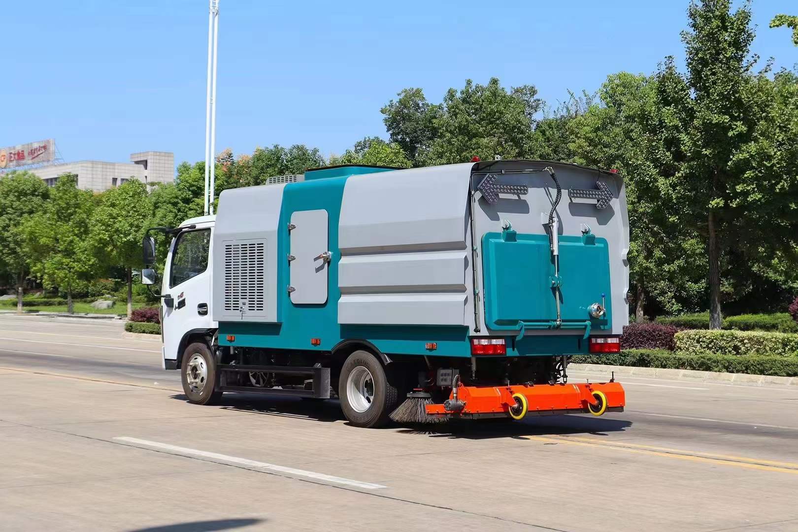 洗掃車:是掃路車的升級版本,在原有的掃路車的基本上加了高壓水泵之后,在掃盤旁邊加了高壓沖洗功能,經(jīng)過沖洗的路面更加干凈,且還有?后噴霧,可以達(dá)到二次降塵的效果。