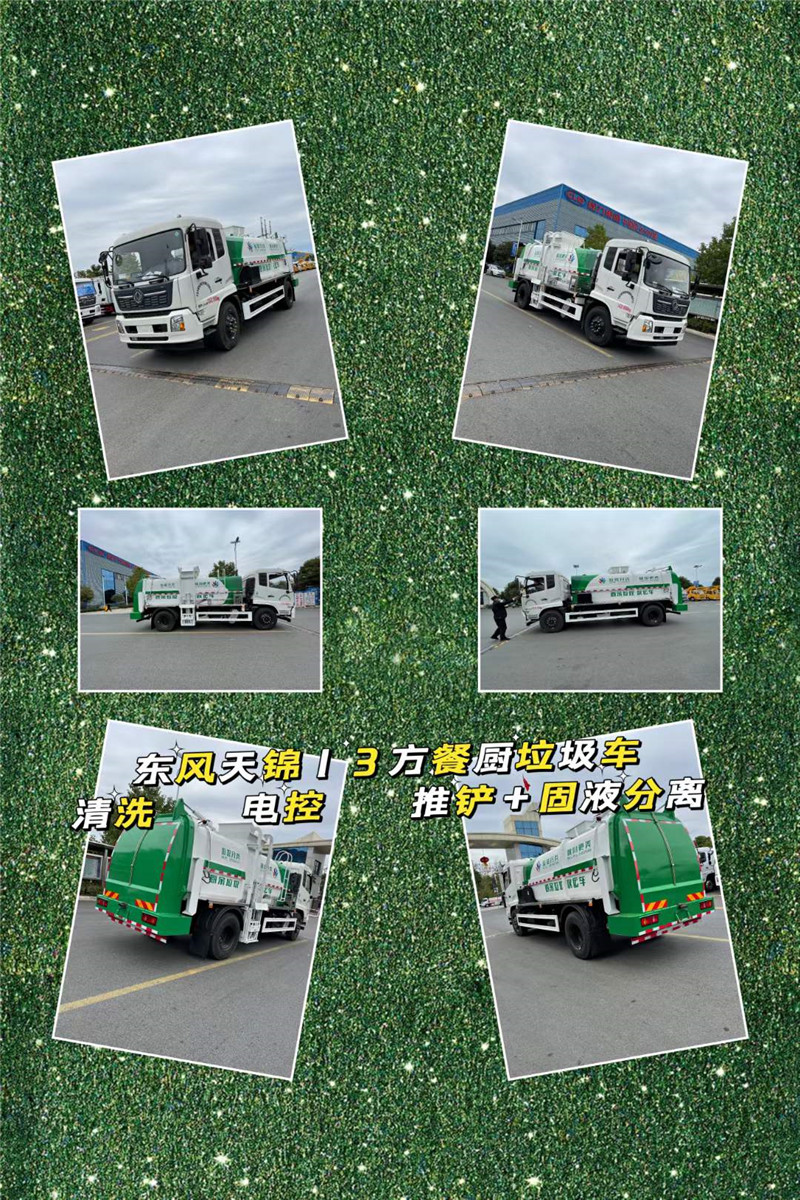 東風天錦13方餐廚垃圾車清洗電控推鏟固液分離