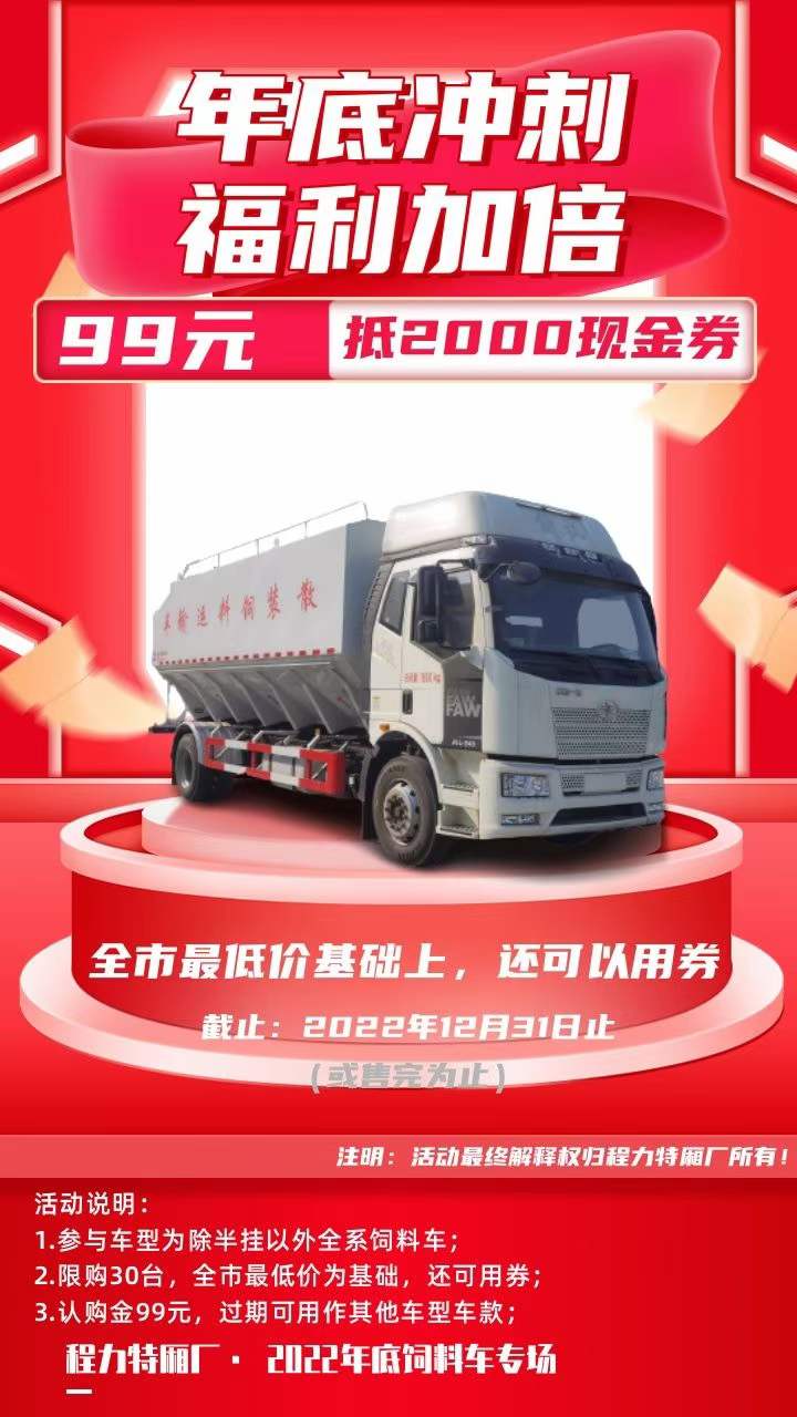 2022年程力特廂廠年底福利鉅惠散裝飼料運輸車25方認購直減2000的超大活動;
