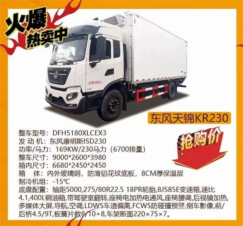 東風(fēng)天錦KR230冷藏車,發(fā)動機康明斯230馬力。
