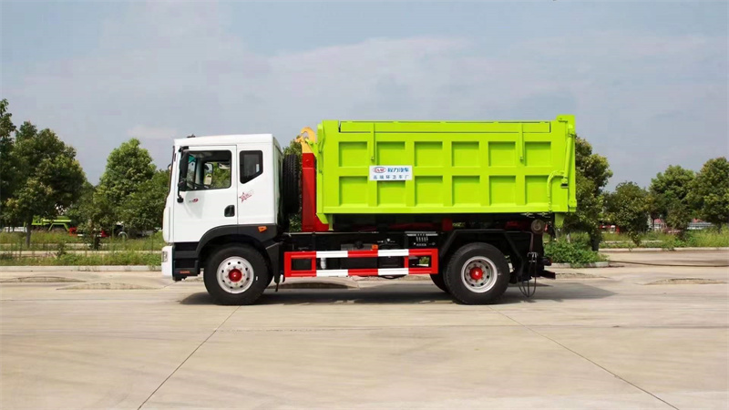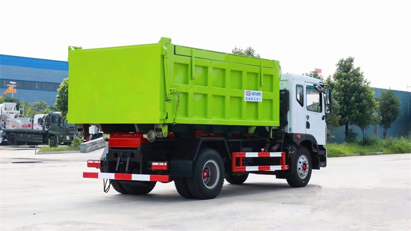 車廂可卸式垃圾車采用全封閉式垃圾箱,并可被吊裝和卸離底盤。具有結(jié)構(gòu)簡(jiǎn)單,操縱方便靈活,安全可靠,機(jī)械化程度高等特點(diǎn),因而使其具有較高的工作效率,同時(shí)可防止誤操作,避免事故發(fā)生,并可節(jié)省人力,減輕工作人員的勞動(dòng)強(qiáng)度。由于它的特殊結(jié)構(gòu)型式和工作方式,使其在裝車和運(yùn)輸過(guò)程中能有效地避免二次污染及噪聲污染,對(duì)于保護(hù)環(huán)境極為有利,是一種新型垃圾收集和運(yùn)輸車。