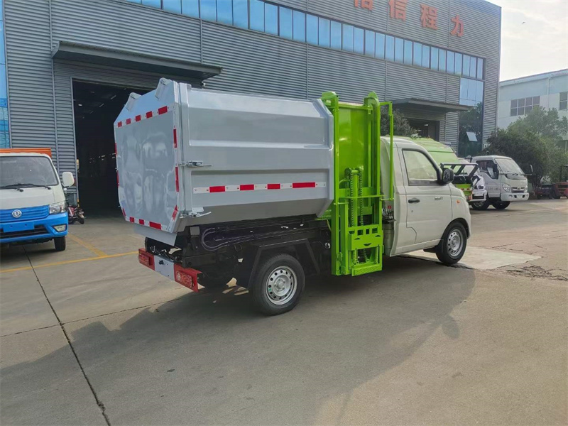 上?配裝?置:雙液壓缸舉?自升?卸,尾門帶密封圈、威?博森?樂液壓油缸,帶駕駛室操作,?門尾?手?開動?啟,箱體容積4方,可掛240L垃圾桶,?式鏈?提升機。