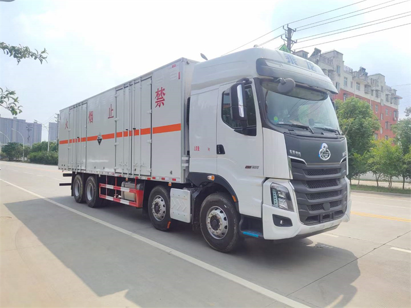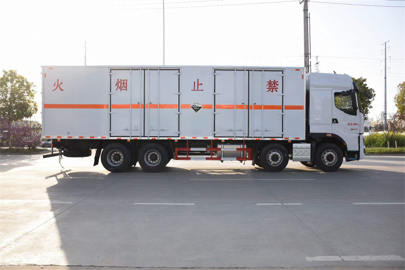廂體配置:嚴格按照公告尺寸制作,外板采用1mm厚冷軋板有一次性成型的百葉窗,內(nèi)飾為導電性能良好的鋁板有透氣孔,內(nèi)襯為矩形管骨架牢靠穩(wěn)定,內(nèi)部填充為透氣防潮阻燃的擠塑板,四種材料經(jīng)現(xiàn)代工藝復合而成,廂體外部上下鋁合金型材包邊,底板和車廂前下部鋪橡膠皮,后門雙開,右側叁個雙開門,內(nèi)部有固定貨物的臥環(huán),車輛外部有靜電帶、滅火器、防火罩,車廂內(nèi)安裝煙霧報警器和門防盜報警器,嚴格按照國家危險品相關法規(guī)張貼。