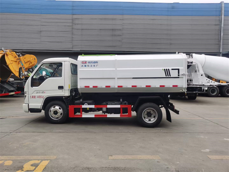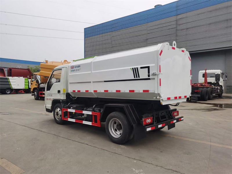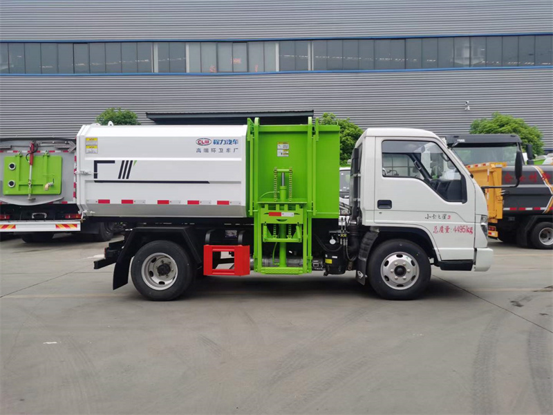 國六福田小卡之星三掛桶垃圾車,福田4方掛桶垃圾車,軸距:2850mm,6.50鋼絲胎,全柴115馬力發(fā)動機;箱體舉升自卸,搭配120L/240L垃圾箱使用。