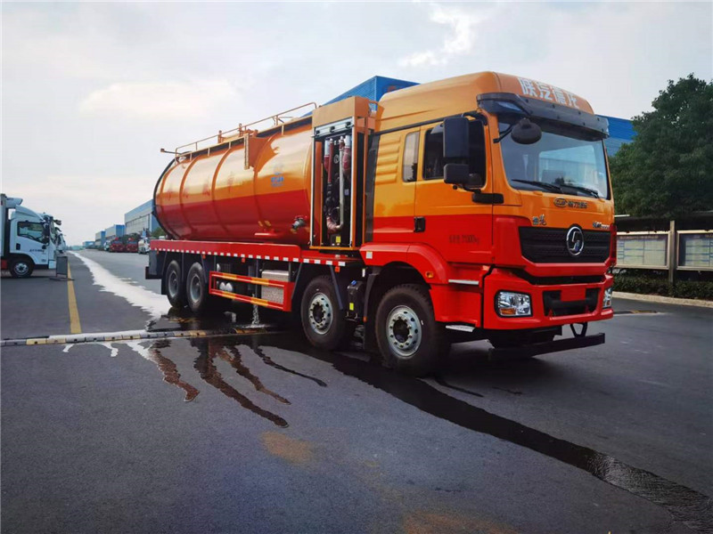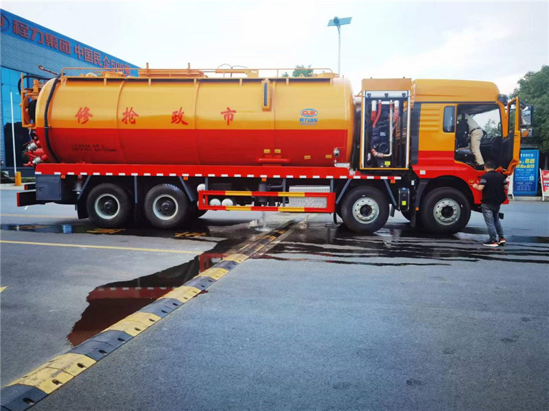 程力廠家生產(chǎn)的陜汽德龍國六前四后八清洗吸污車,33方清洗吸污車整車型號為程力牌CL5312GQW6CC新M3000清洗吸污車,底盤配置:濰柴發(fā)動機(jī)460馬力,輪胎:12.00R20,底盤后橋加固(四騎馬螺栓),陜汽M3000加長高頂駕駛室,液壓懸置、空氣主座椅、駕駛室手動翻轉(zhuǎn)、金屬保險(xiǎn)杠、電動空調(diào)、電動搖窗機(jī)、國產(chǎn)轉(zhuǎn)向機(jī)、國產(chǎn)離合器、備胎架、國產(chǎn)四通道ABS、搖臂式遠(yuǎn)程油門控制裝置、天行健智雅版BD車載終端、變速箱后取力。